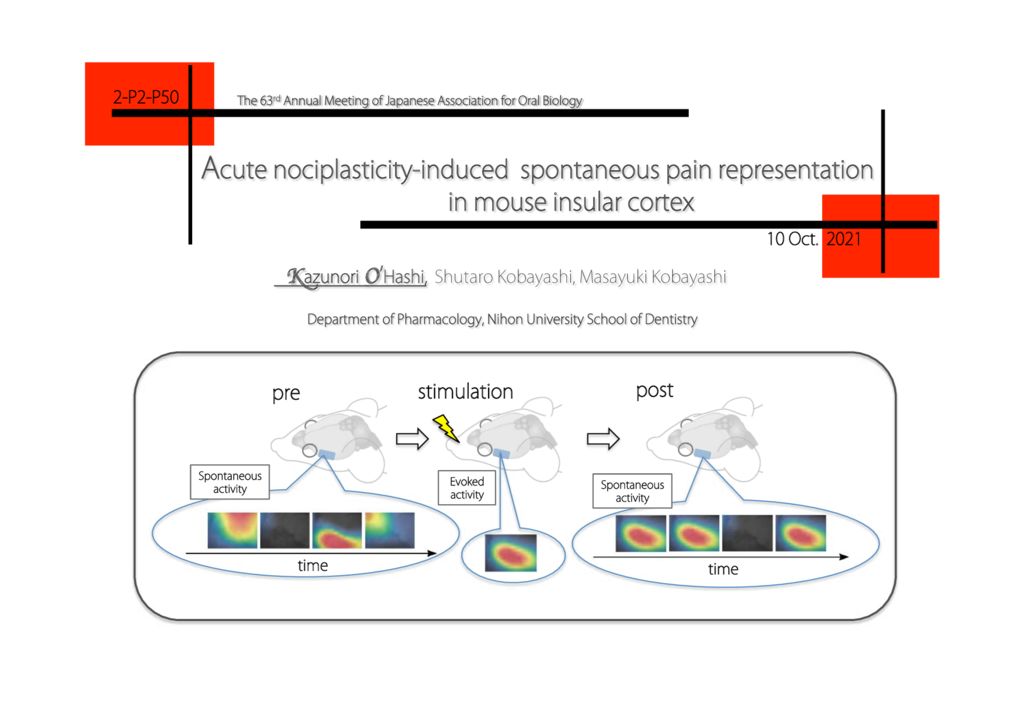 Abstract: 大脳皮質の神経細胞集団は特定のタスクや外部刺激がなくとも、機能コラムや脳領野といった特定の情報を処理する機能構造を再現した同期活動を恒常的に出現させており、この秩序構造を持った脳内活動は自発活動と呼ばれている。近年、客観的診断が困難な慢性痛患者の自発活動は健常者と異なることが機能的脳画像法により明らかとなり、痛みという主観的な感覚を脳の自発活動によって評価する方法が確立されつつある。一般的には、繰返される急性痛が慢性痛へ転化するといわれているが、慢性痛へ移行した時点において自発活動が変調しているのであれば、急性痛自体も自発活動を修飾している可能性がある。そこで、本研究では慢性痛に伴う自発活動の変化が確認されている島皮質に着目し、歯根膜電気刺激が島皮質自発活動にどのような影響を与えるのかについて,GCaMP6sマウスにカルシウムイメージング法を適用して検討した。 その結果、自発活動中に出現する侵害情報表現、つまり、歯根膜刺激によって賦活される島皮質内の脳領域が,歯根膜刺激を与えない状態においても有意に賦活化されることが明らかとなった。また興奮性ニューロンの自発神経発火活動を二光子顕微鏡で観察したところ、ニューロンの活動性と同期性が歯根膜刺激後に増強されることが確認された。すなわち、マクロレベルで同定された歯根膜刺激による島皮質における応答領域に存在するニューロンが自発的に活性化されることを明らかにすることが出来た。これらの結果は、侵害刺激自体が惹起する疼痛に関わる神経回路の可塑的変化には、自発活動による回路の可塑的変化が含まれることを示唆しており、自発活動の増加が急性痛から慢性痛へと転化する機構に貢献している可能性を示している。