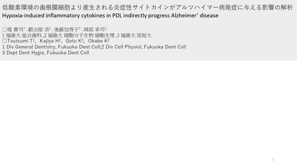 [3-P1-P100] 低酸素環境の歯根膜細胞より産生される炎症性サイトカインがアルツハイマー病の病因因子産生に与える影響の解析