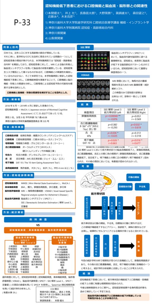 Author:〇上原 雄人1、印南 永2、藤井 学1、迫田 貴煕1、香西 雄介2、谷口 紀江2、泉 雅浩2、川股 亮太3、櫻井 孝2Affiliation:1神奈川歯科大学附属病院画像診断科、2神奈川歯科大学顎顔面病態診断治療学講座、3神奈...